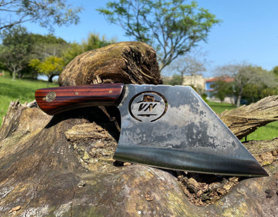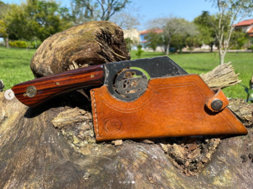 Bainha: Acompanha uma bainha de couro atanado legítimo, cuidadosamente costurada à mão, garantindo proteção e facilitando o transporte da sua faca.