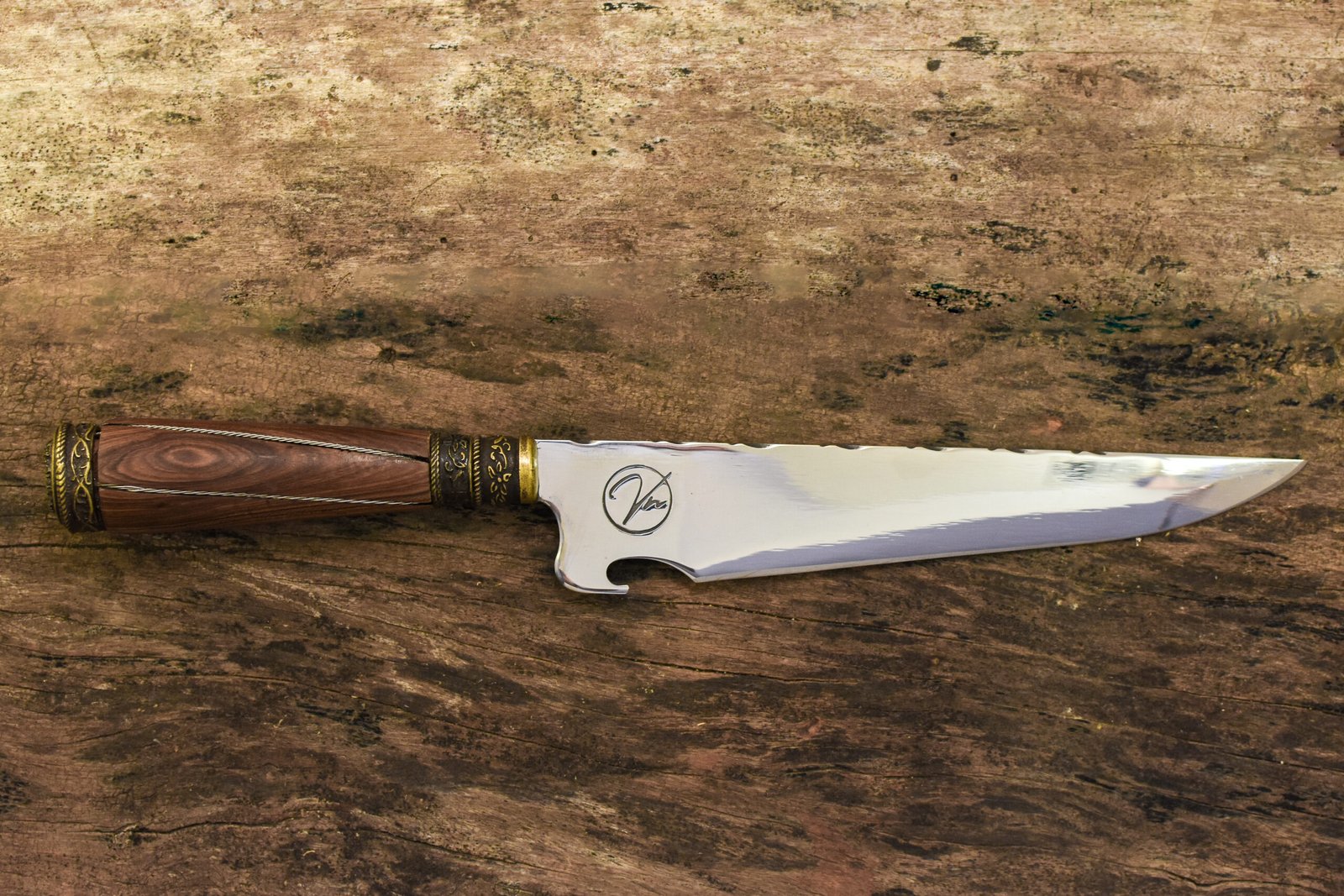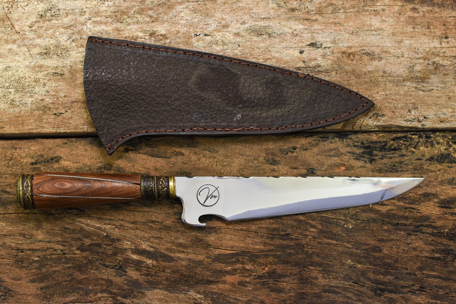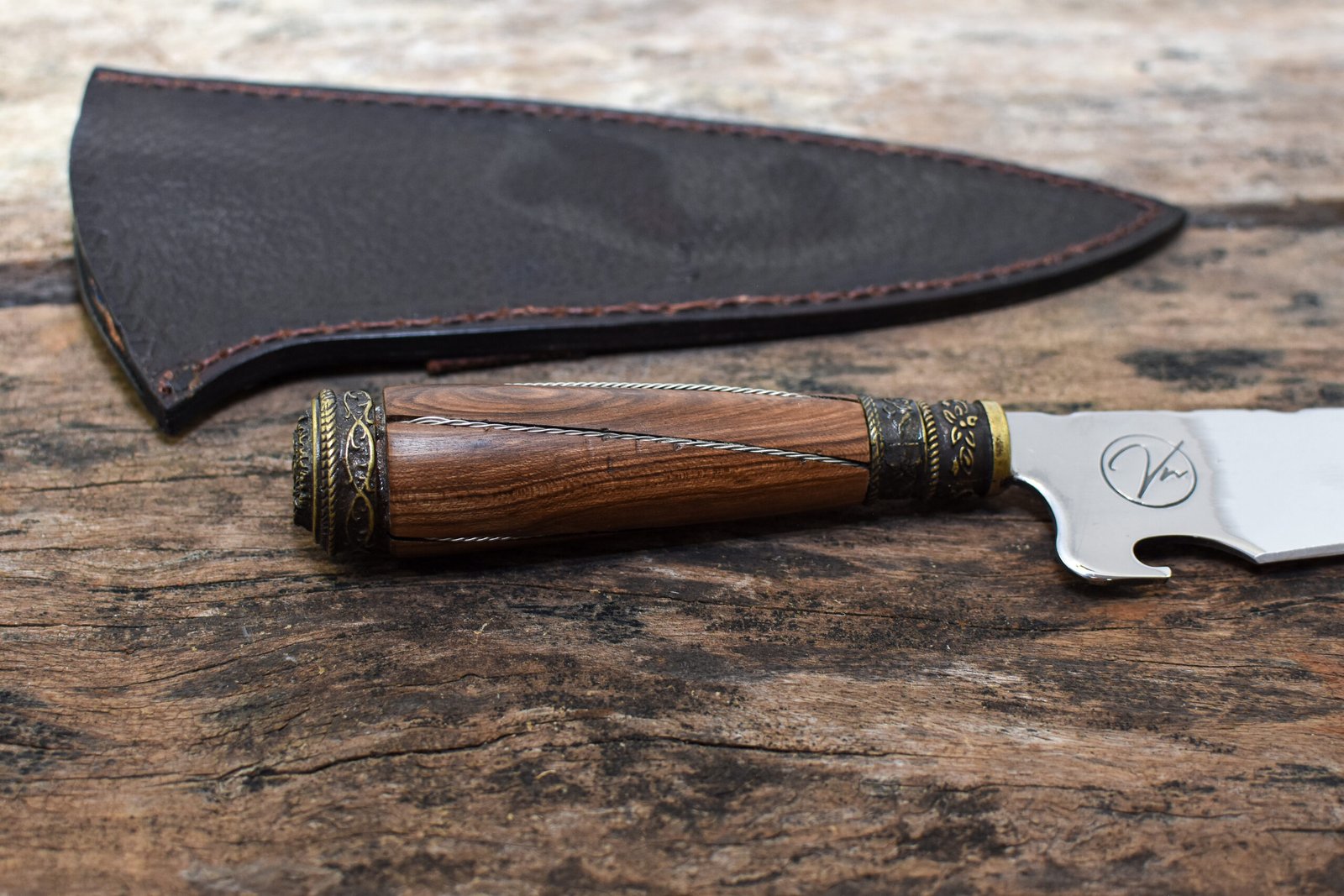 - Bainha: Acompanha uma bainha de Couro Bovino Atanado legítimo, cuidadosamente costurada à mão, garantindo proteção e facilitando o transporte da sua faca artesanal.