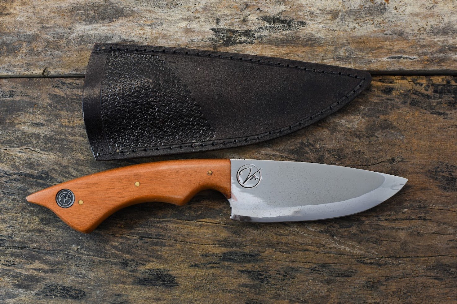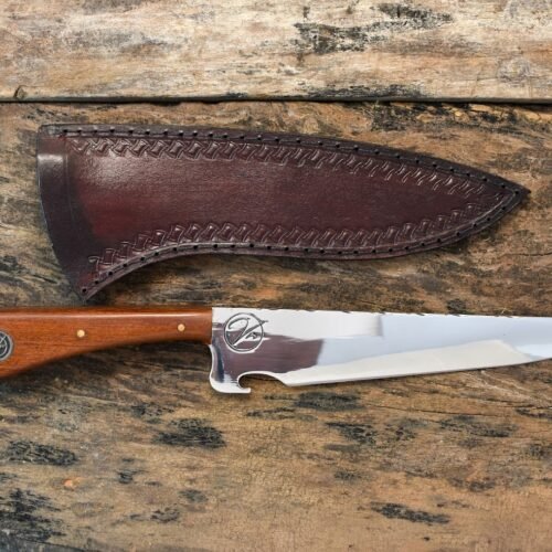 Bainha: Acompanha uma bainha de Couro Bovino Atanado legítimo, cuidadosamente costurada à mão, garantindo proteção e facilitando o transporte da sua faca artesanal.