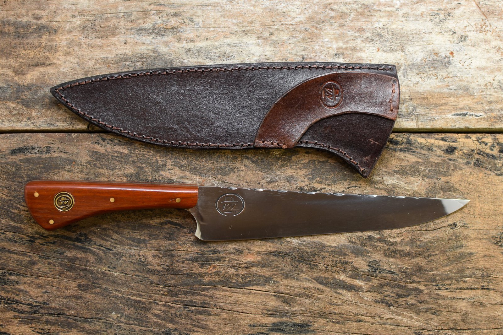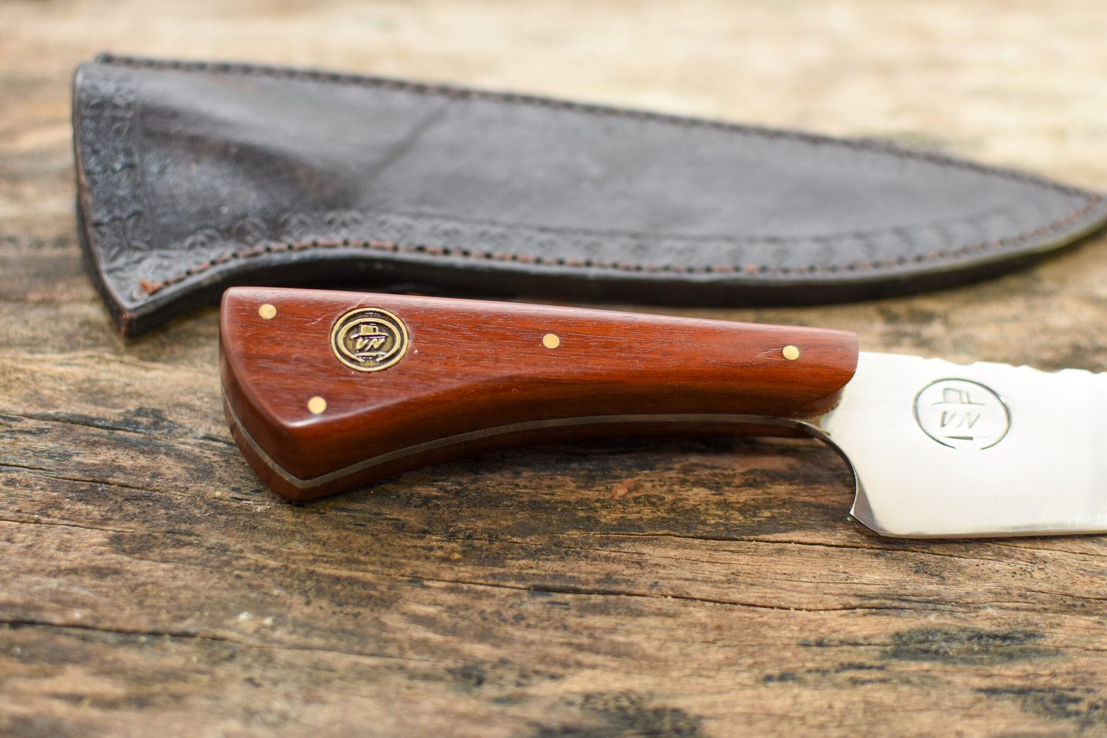 - Bainha: Acompanha uma bainha de Couro Bovino Atanado legítimo, cuidadosamente costurada à mão, garantindo proteção e facilitando o transporte da sua faca artesanal.