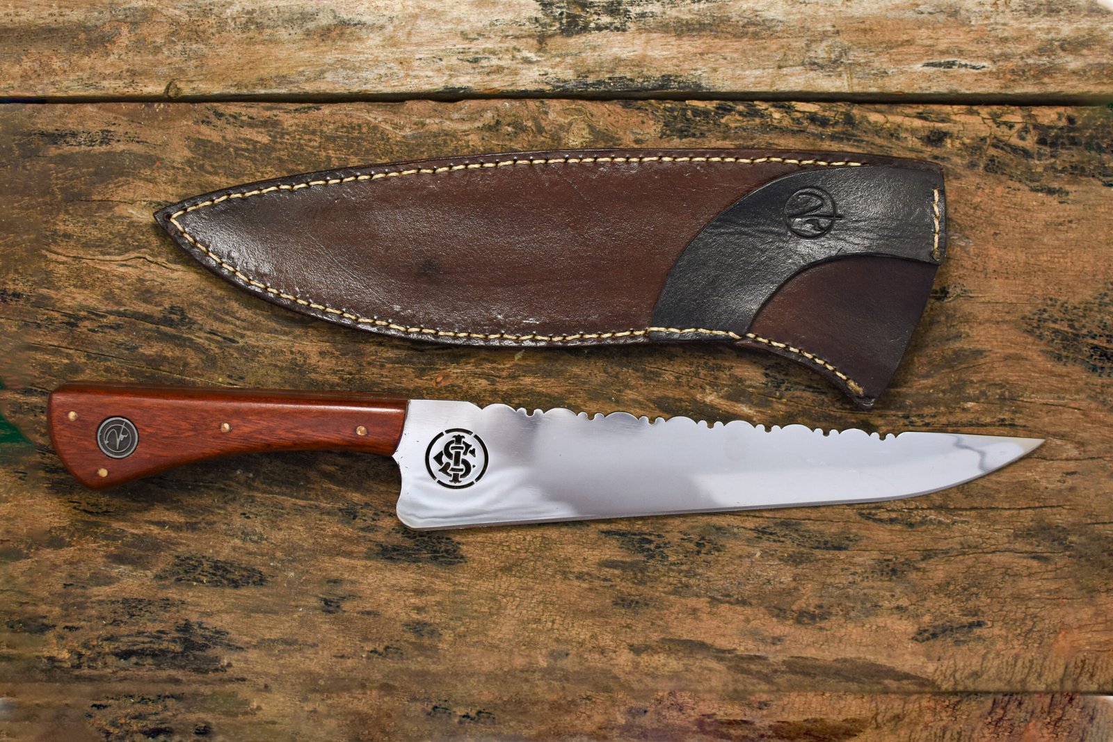 - Bainha: Acompanha uma bainha de Couro Bovino Atanado legítimo, cuidadosamente costurada à mão, garantindo proteção e facilitando o transporte da sua faca artesanal.