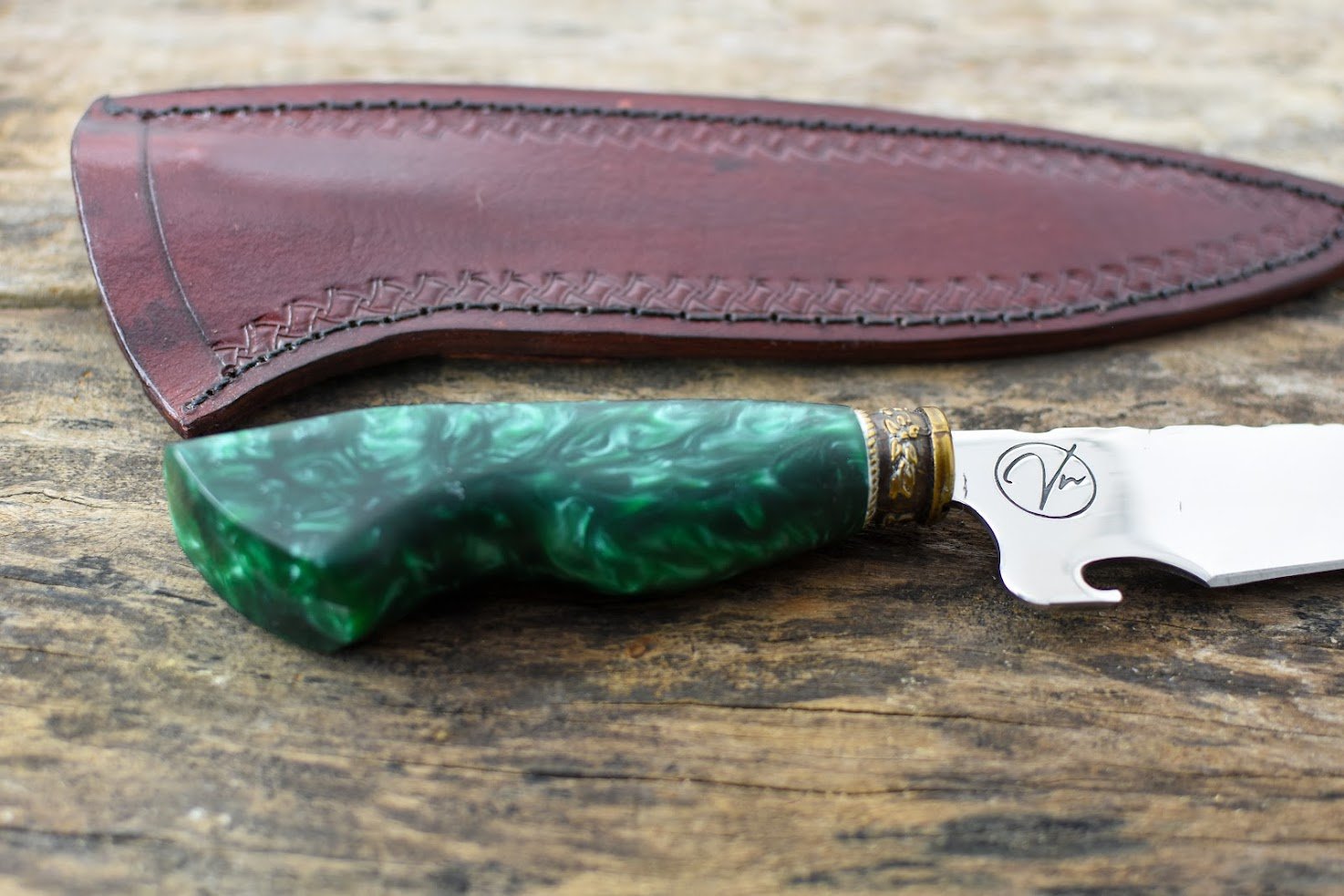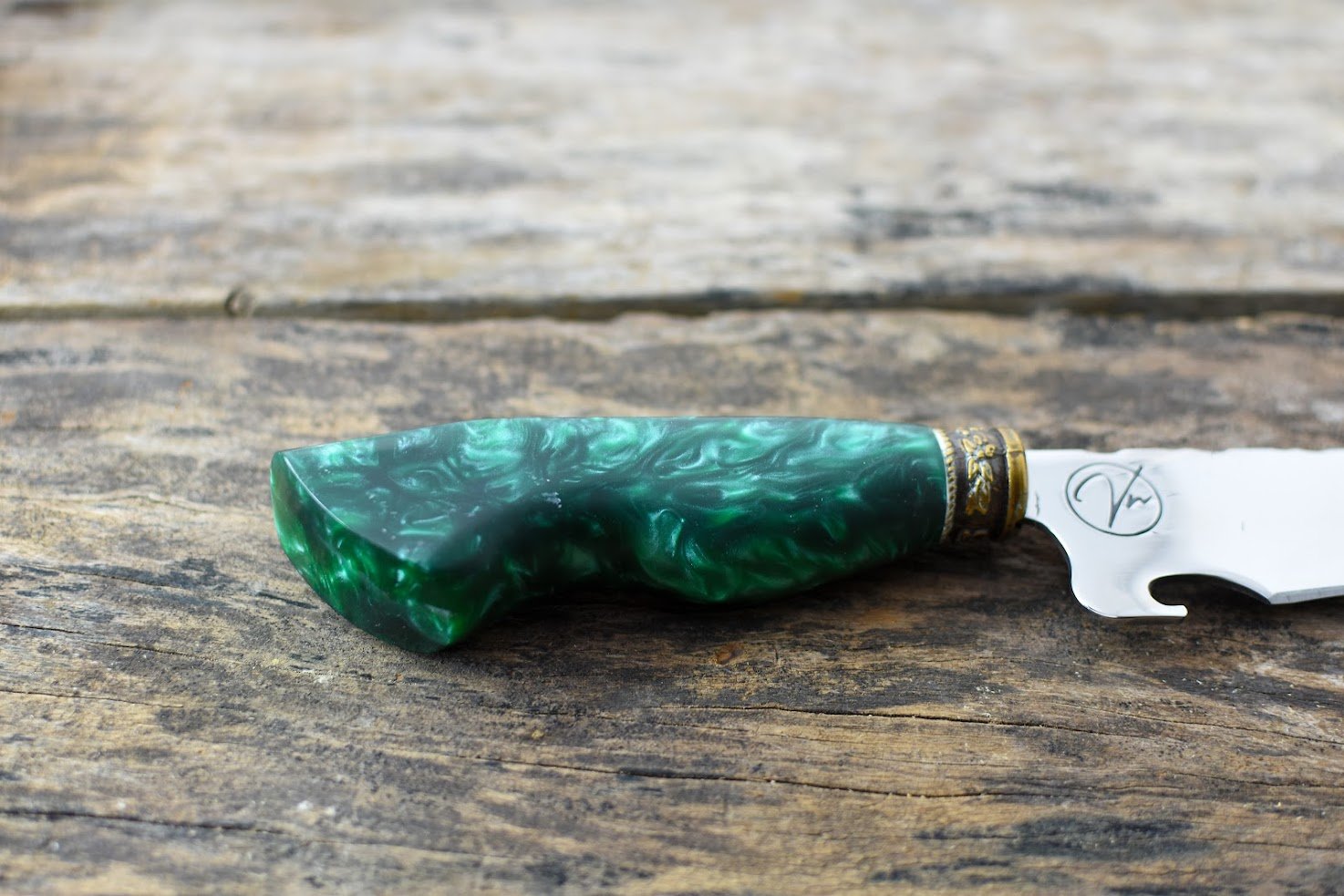Início Facas Artesanais Faca Artesanal Com Cabo de Resina Verde – 71