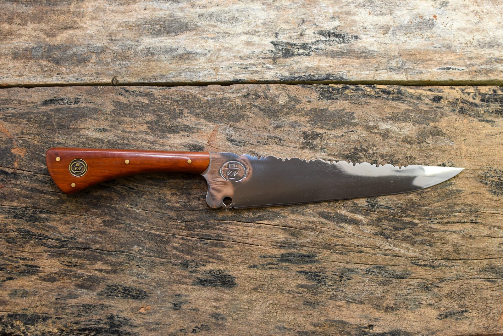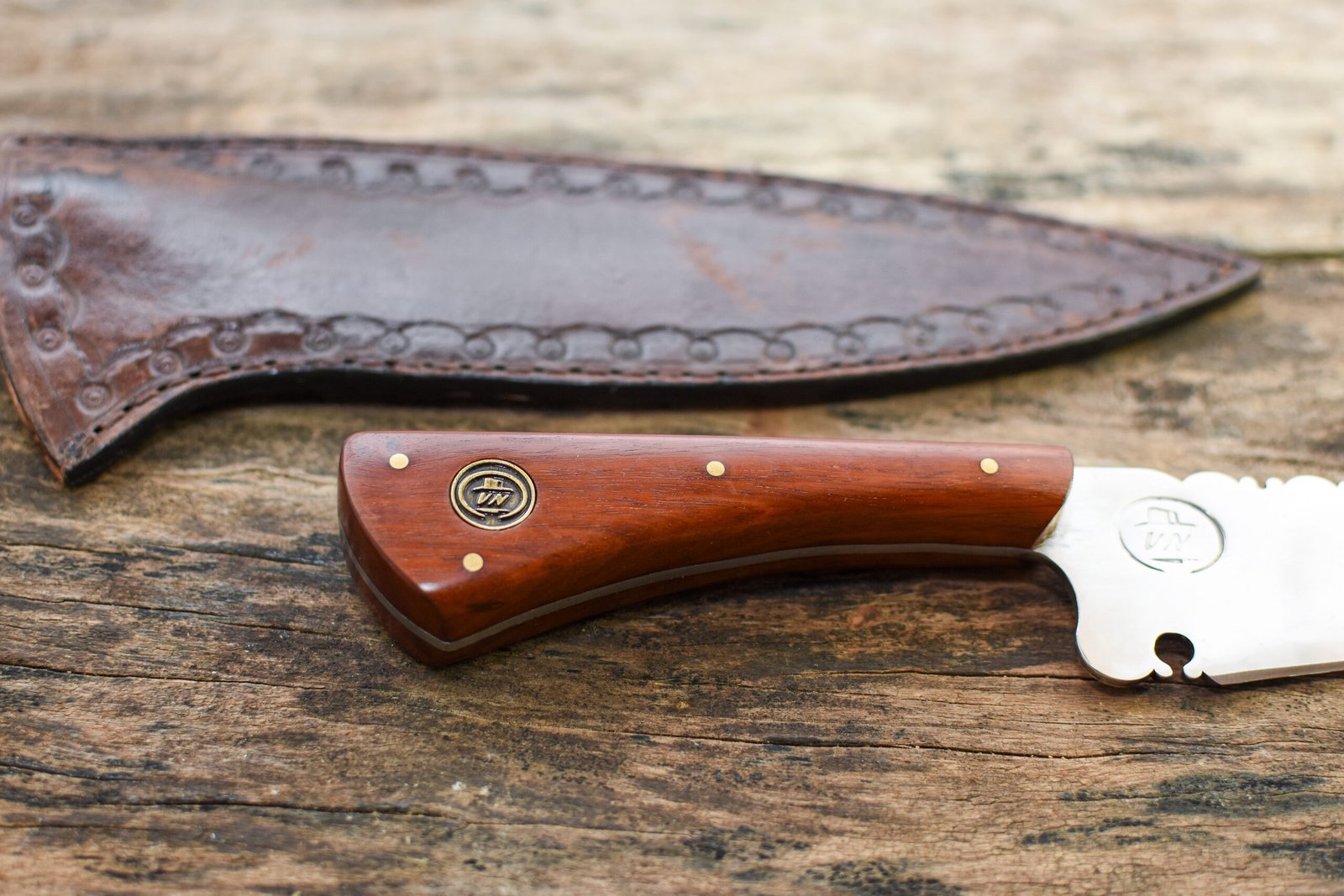 - Bainha: Acompanha uma bainha de Couro Bovino Atanado legítimo, cuidadosamente costurada à mão, garantindo proteção e facilitando o transporte da sua faca artesanal.