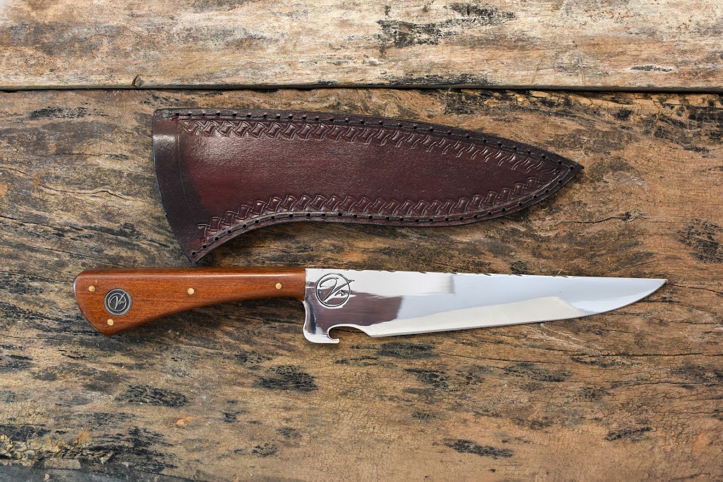 - Bainha: Acompanha uma bainha de Couro Bovino Atanado legítimo, cuidadosamente costurada à mão, garantindo proteção e facilitando o transporte da sua faca artesanal.